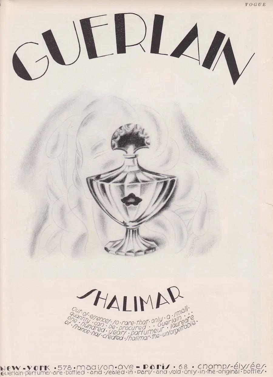 從這天起,一款香水將永載史冊,從嗅覺魔術(shù)到視覺藝術(shù)。它就是Shalimar。它如此成功,以至于香水評論家盧卡·圖林戲謔到:“或許世界上最多的單一香水類型就是‘失敗的Shalimar’——人人都想嘗試,但沒有誰能接近?!?/p>