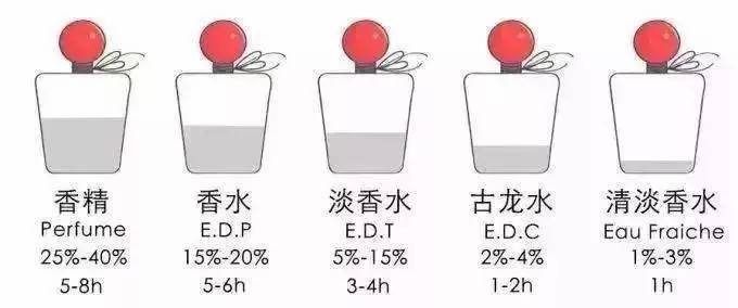 PS:濃度在香水行業(yè)中沒有硬性標(biāo)準(zhǔn),所以大多數(shù)品牌會(huì)按照自己的標(biāo)準(zhǔn)來(lái)劃分。列如A品牌的EDP濃度比B品牌的EDT還要低的情況,所以買香水一定要仔細(xì)對(duì)比之后再購(gòu)買。