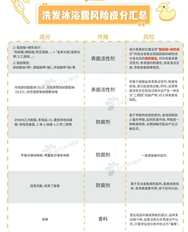 表面活性劑有很強(qiáng)的刺激性,容易導(dǎo)致皮膚屏障受損,防腐劑總可能含一些致癌物質(zhì),長(zhǎng)期接觸產(chǎn)生過(guò)敏反應(yīng),香料香精是也是極易致敏的成分,也不適合給寶寶使用。
