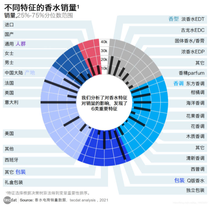 在香水產(chǎn)品分類方面,香水的產(chǎn)地、香調(diào)和包裝會對銷售產(chǎn)生很大影響。
