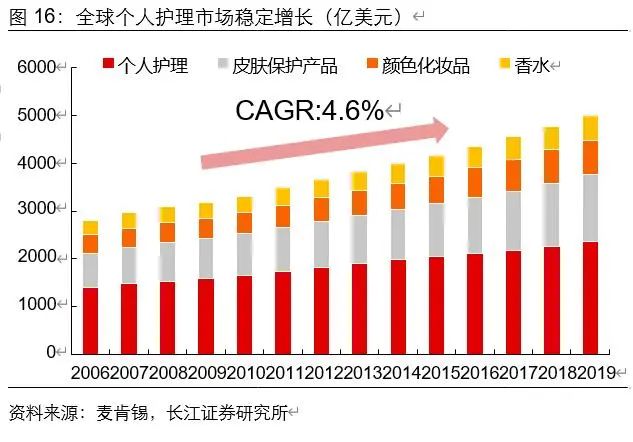 日用市場(chǎng):全球日化市場(chǎng)穩(wěn)定增長(zhǎng),相關(guān)香精香料需求穩(wěn)定上行。據(jù) Data Bridge 預(yù)測(cè),隨著洗滌劑功能化需求提升以及新興市場(chǎng)需求快速增長(zhǎng),預(yù)計(jì)全球液體洗滌劑市場(chǎng)規(guī)模仍有望保持高速增長(zhǎng),相關(guān)洗滌用品香精香料需求有望提升。全球化妝品市場(chǎng)在過去能夠保持穩(wěn)定增長(zhǎng),從 2005 年到 2019 年,全球化妝品市場(chǎng)銷售額從約 2670 億美元增長(zhǎng)到約 5000 億美元,年均復(fù)合增速約為 4.6%?;瘖y品市場(chǎng)需求穩(wěn)定增長(zhǎng),相關(guān)日化型香精香料產(chǎn)品市場(chǎng)需求有望維持穩(wěn)定增長(zhǎng)。