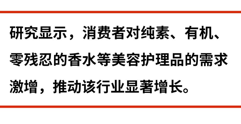 督促升級改造的進程離不開消費者的需求。據(jù)市場研究公司Frost & Sullivan的最新調查報告Growth Opportunities for Natural Fragrances inPersonal Care顯示,消費者對純素、有機、零殘忍的香水等美容護理品的需求激增,推動該行業(yè)顯著增長。