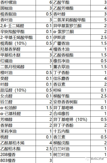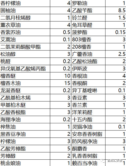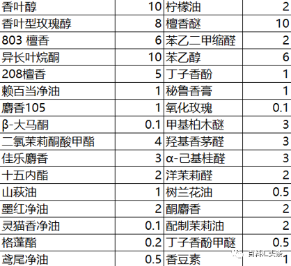 3、東方香型香精配方舉例——東方香型香精配方(質(zhì)量份)