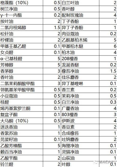2、東方香型香精配方舉例——東方香型香精配方(質(zhì)量份)