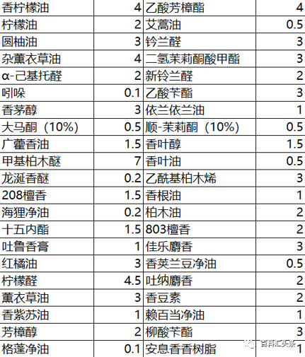 4、素心蘭型香精配方舉例——素心蘭型配方(質(zhì)量份)