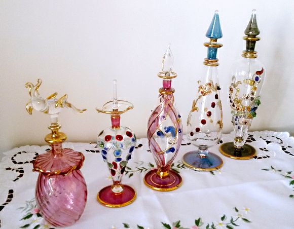 不過(guò)為了那些晶瑩剔透的香水瓶我也愿意買買買!裝香精的瓶子,或高或矮,有的呈棗核型,有的呈球狀,有的是五彩琉璃瓶,有的則是單色造型瓶……每個(gè)瓶子上的圖案都不太一樣,凹凸有致,層次分明,畫工精細(xì),讓人愛(ài)不釋手。