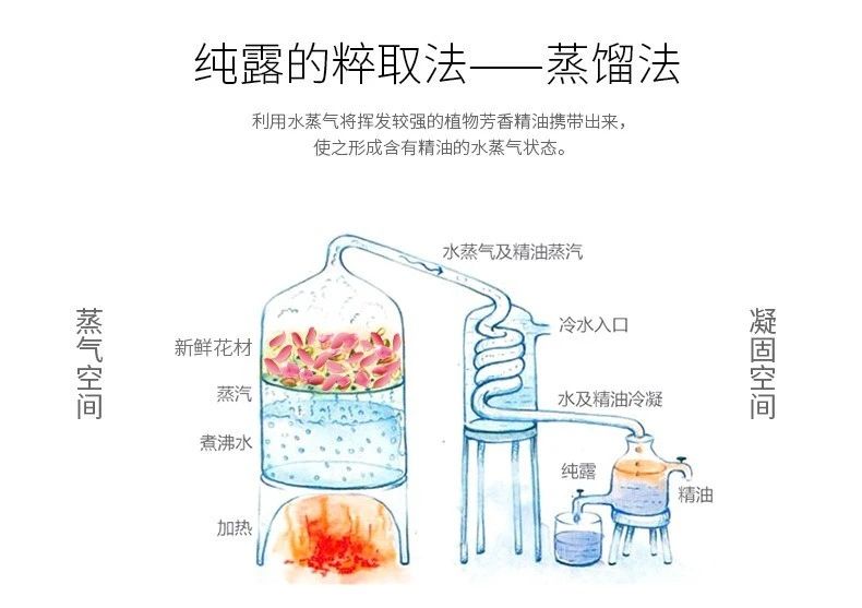 純露,又稱水精油,天然純凈,香味清淡怡人,是現(xiàn)在較為時(shí)興的護(hù)膚產(chǎn)品?!凹兟丁笔窃趺瓷a(chǎn)出來的呢?精油在蒸餾萃取過程中,油水會(huì)分離,因?yàn)槊芏炔煌?,精油?huì)漂浮在上層,而沉淀在下層的蒸餾原液就是"純露"了。“純露”以水分為主,含有少量精油成分以及部分植物體內(nèi)的水溶性物質(zhì)。